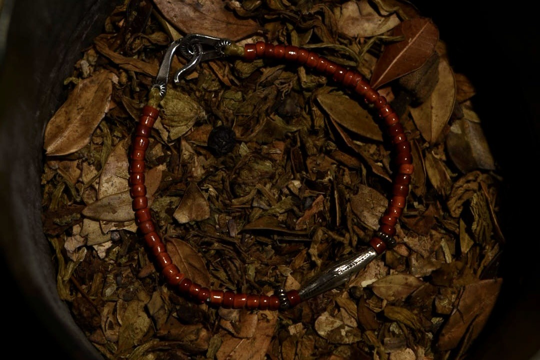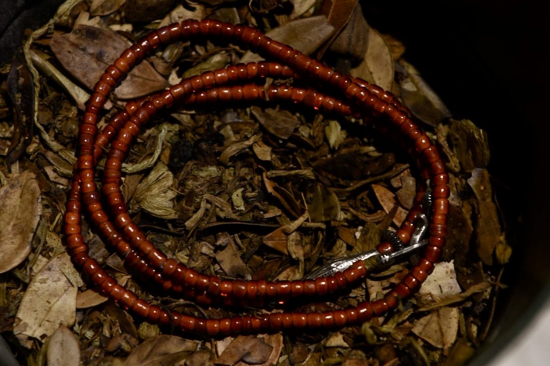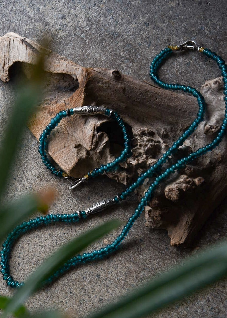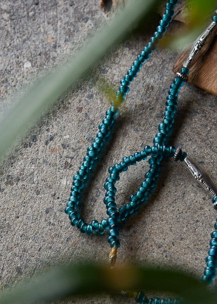 希少なブルーグリーンのシードビーズは年月を重ね、